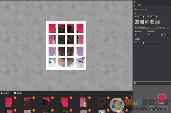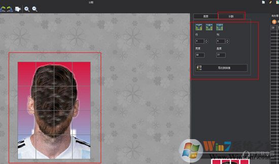 4、下面來說說分割功能,分割可以選擇不同的行與列進行圖片的分割,每個分割后的寬度與高度也可以自定義進行選擇,如下圖所示: