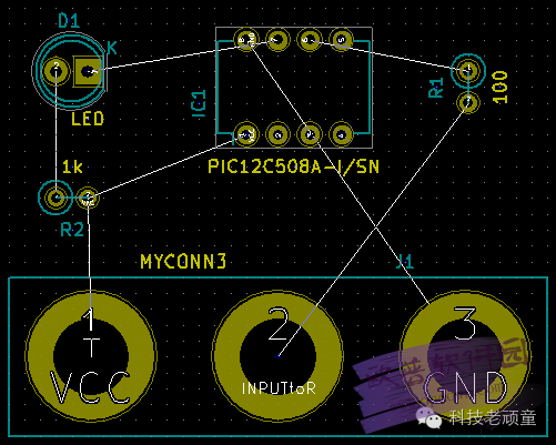 12. 下一步,我們要連接除了地以外的所有導(dǎo)線。因?yàn)?,我們將會在buttom copper層(叫做B.Cu)用一個地覆銅來連接所有的GND。