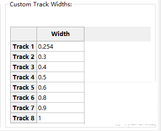 16. 如果你想增加更多的線寬可供選擇,選擇菜單Design Rules → Design Rules → Global Design Rules ,在這個窗口的右下腳,可以加入你想要的其它線寬。在繪制PCB圖的時候,你就可以有多種線寬可供選擇了。例如下圖所示:單位(mm)