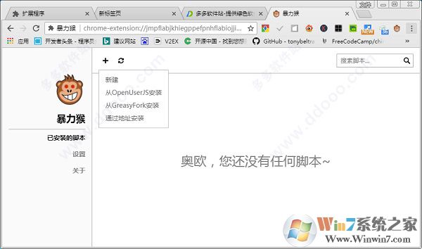 3、當然也可以在已安裝的腳本中,安裝新腳本或者通過新建,自己編寫腳本