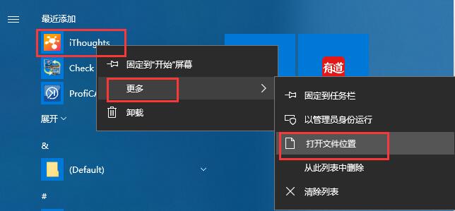 2、軟件完成后,在“開(kāi)始”欄找到軟件快捷圖標(biāo),并且右鍵點(diǎn)擊快捷圖標(biāo),選擇更多---打開(kāi)文件位置