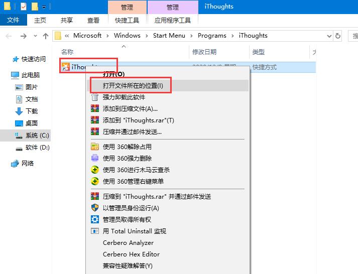 3、在打開(kāi)的文件夾中,大家將看到快捷圖標(biāo),然后,有右鍵點(diǎn)擊快捷圖標(biāo),選擇“打開(kāi)文件所在的位置”