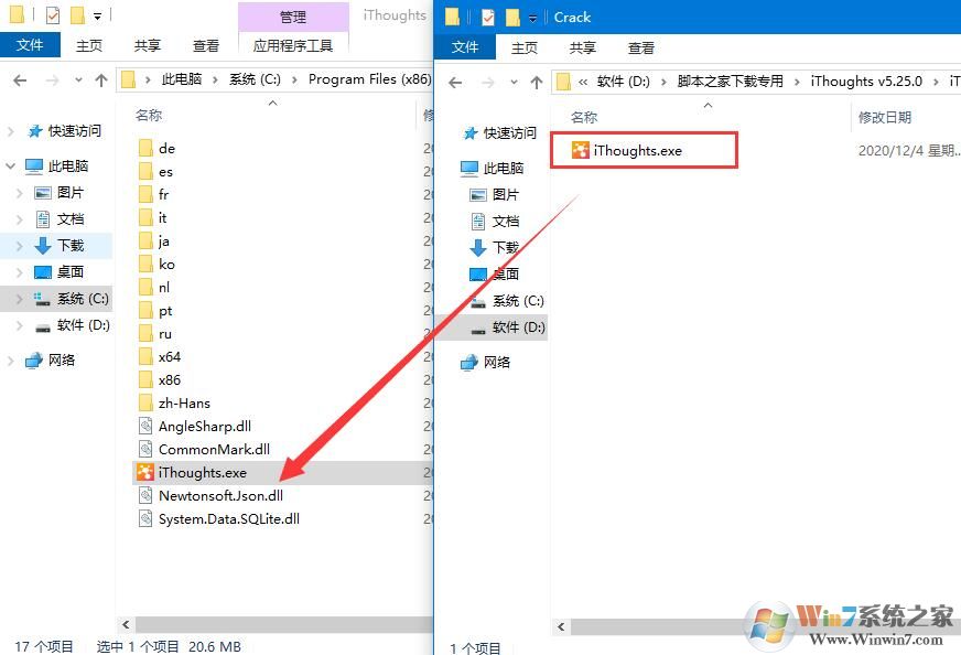4、然后將crack文件夾中的文件復(fù)制粘貼到軟件安裝目錄,(注意!軟件安裝目錄為:C:\Program Files (x86)\toketaWare\iThoughts)