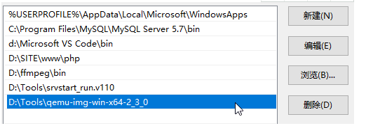 在Windows系統(tǒng)中,為了使用方便,可以將qemu-img.exe所在的目錄添加到環(huán)境變量。