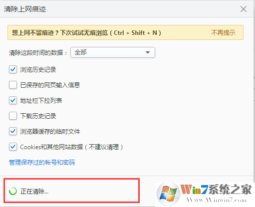 入口二:標(biāo)簽欄置頂,菜單欄→清除上網(wǎng)痕跡