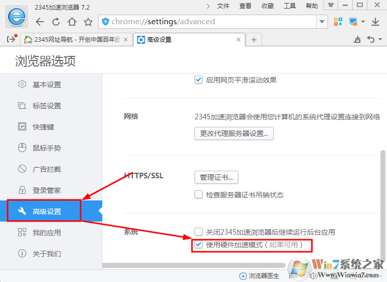2、瀏覽器選項選擇高級設(shè)置-系統(tǒng)-“使用硬件加速模式”取消勾選