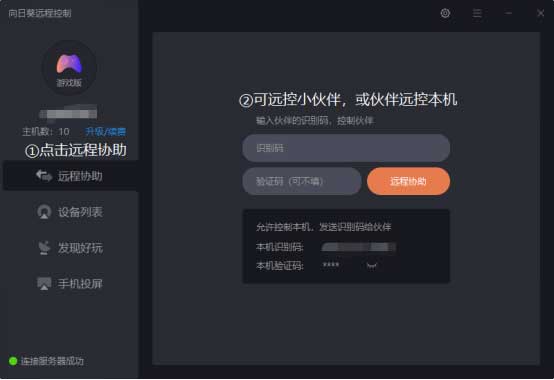 1、雙端登錄同一賬號即可綁定,點擊遠(yuǎn)控輸入PC端主機賬號密碼進(jìn)入