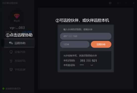 也可以輸入伙伴的識別碼和驗證碼,去遠(yuǎn)控伙伴的電腦。