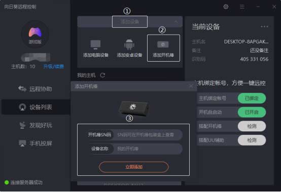 點擊“添加開機棒”,可輸入開機棒的SN碼和設(shè)備名稱,點擊“立即添加”,即可將開機棒添加至帳號下使用。