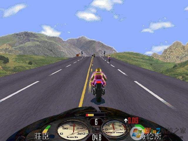 (3)賽事開展期內(nèi),按V鍵可查詢手機(jī)游戲版本號(hào);按F10為轉(zhuǎn)換/顯示信息/掩藏摩托的儀表盤控制面板;小鍵盤的“+-”鍵為更改背景故事的貼圖色調(diào)