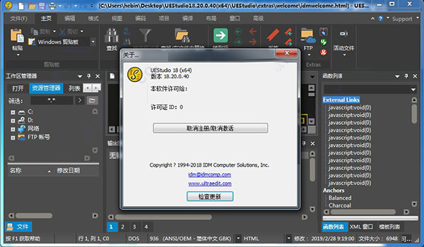 6、至此,IDM UEStudio 20中文破解版成功激活,打開軟件即可直接使用。