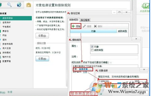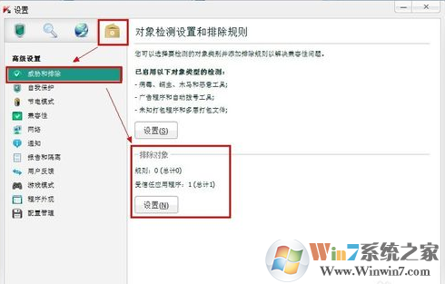 接著我們進入【排除對象】中的【設置】 設置信任區(qū)域。