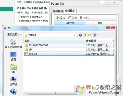 上一步是把整個軟件的文件夾都加入到白名單里。這一步是只把軟件的主程序加入到白名單里。