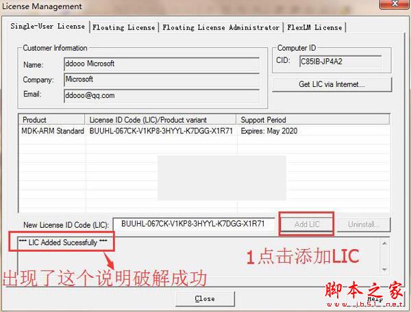 9、點擊“AddLIC”出現(xiàn)如下界面說明破解完成。