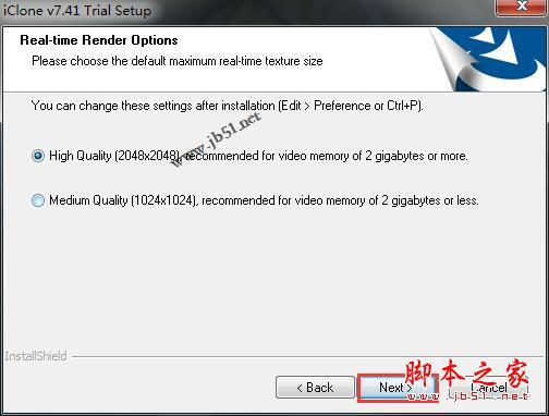 7、實(shí)時(shí)渲染選項(xiàng),默認(rèn)即可,繼續(xù)點(diǎn)擊下一部;
