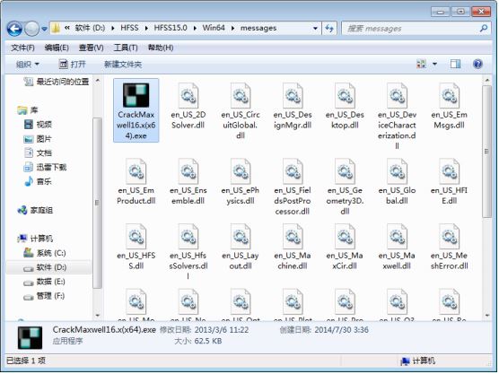 同樣復(fù)制文件“CrackMaxwell16.x(x64).exe” 到文件夾【messages 】下(例:D:\HFSS\HFSS15.0\Win64\messages)。
