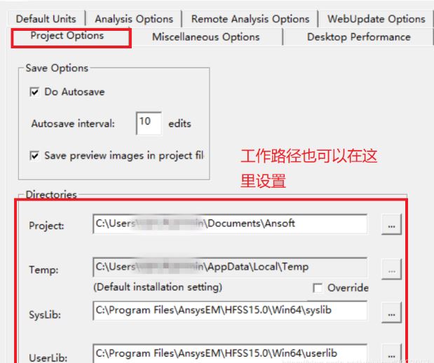 工作路勁也可以General Options中project Options中設(shè)置。
