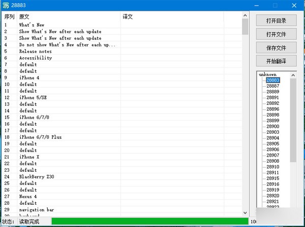 注意一定要將原文和譯文兩個(gè)文件放在漢化小工具相同目錄下,否則會(huì)漢化失敗,打開(kāi)漢化工具后點(diǎn)擊打開(kāi)目錄,選擇“resources\unknown”。下面樹(shù)形框就會(huì)顯示出需要漢化的文件。