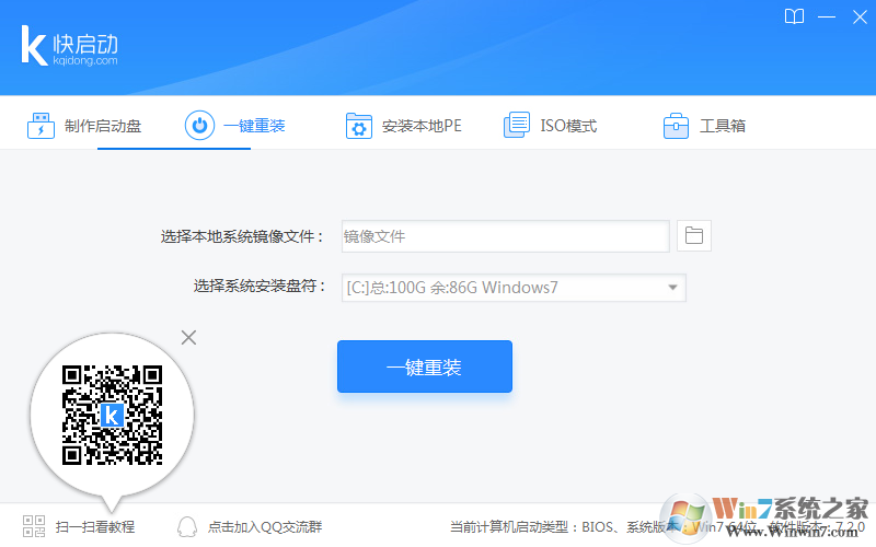 1、進(jìn)入快啟動U盤啟動盤制作工具界面,切換到一鍵重裝窗口