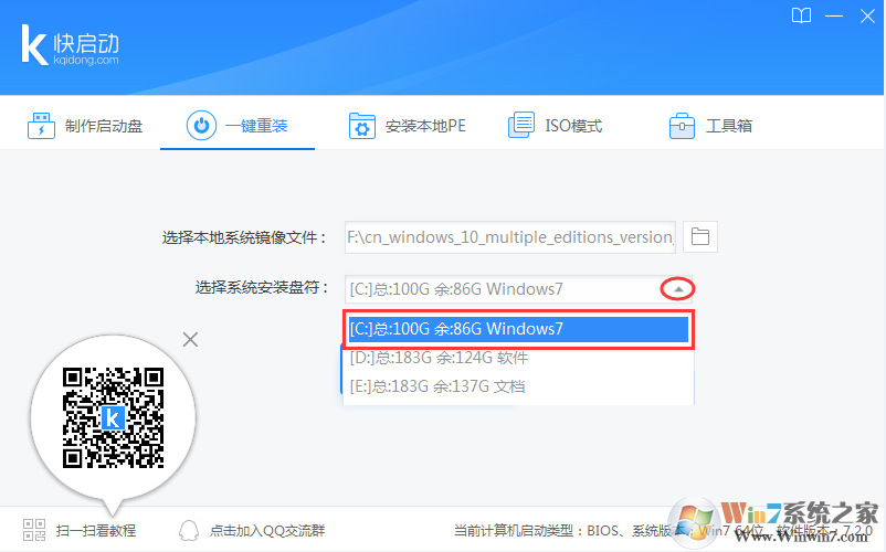 4、選好系統(tǒng)以及安裝盤之后,點擊一鍵重裝
