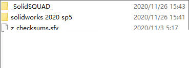 1、在本站下載解壓,得到SolidSQUAD破解文件和solidworks2020 sp5原程序。