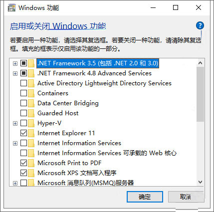 2、首先安裝必裝的組件NET Framework 3.5/4.0組件,也可以打開(kāi)控制面板->程序->啟用或關(guān)閉Windows功能中,勾選NET Framework 3.5,Windows會(huì)自動(dòng)下載安裝。
