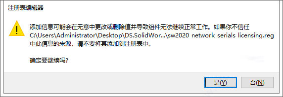 5、再雙擊sw2020_network_serials_licensing.reg添加注冊(cè)表,點(diǎn)擊是。