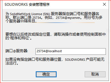 10、在許可證服務(wù)配置界面,端口@服務(wù)器填寫(xiě)【25734@localhost】,點(diǎn)擊確定。