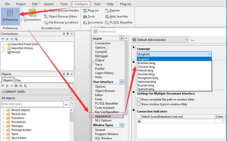 9、中文設(shè)置:找到configure——preferences——appearance——language 選擇簡體中文即可