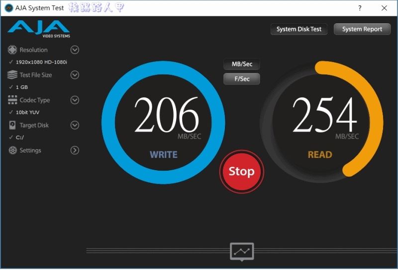 主畫面很直覺簡單易懂,Write與Read圓形指示清清楚楚,按下大大的〔Start〕鈕即可開始測試。