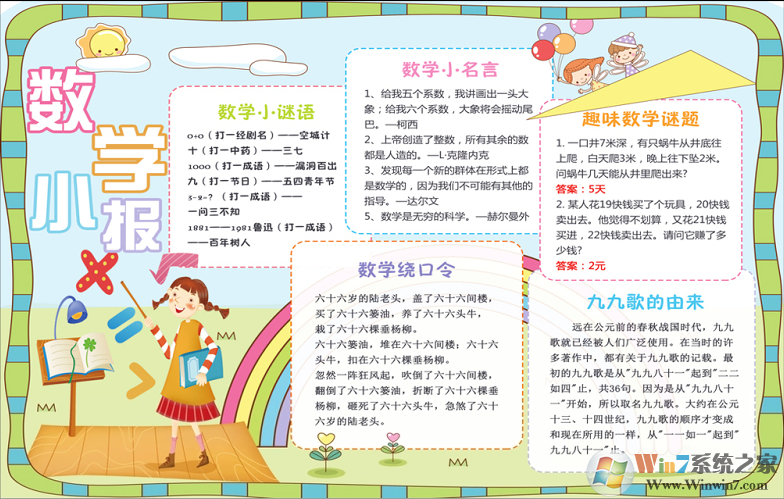 數(shù)學(xué)手抄報(bào)模板二:數(shù)學(xué)小報(bào)