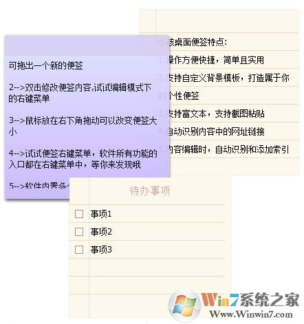 7內(nèi)嵌好幾個個性化模版,包括適用Win7便簽款式的模版。
