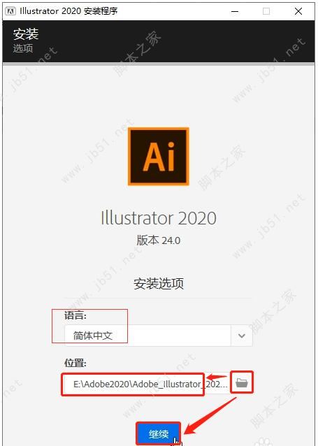 4、位置必須手動選擇,點(diǎn)擊小文件夾,我選擇的位置是E盤內(nèi),Adobe2020文件夾內(nèi)的Adobe Illustrator 2020文件夾;