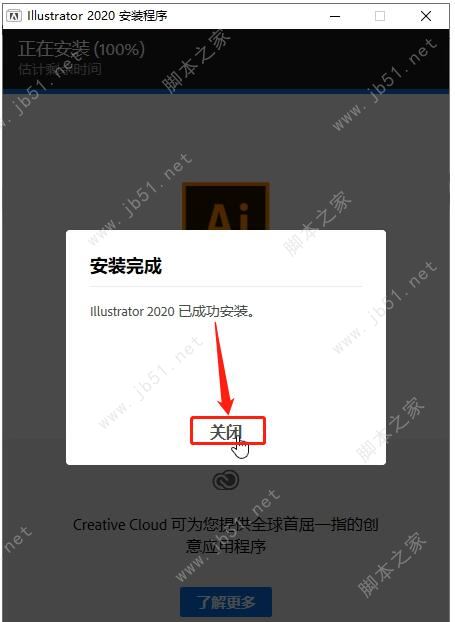 7、Adobe Illustrator 2020已成功安裝,點(diǎn)擊關(guān)閉;