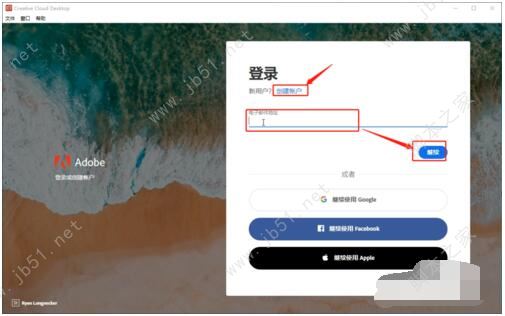 9、登陸自己的AdobeID;如果沒有的話,請點(diǎn)擊創(chuàng)建賬戶,自己申請一個,再登陸即可;登陸成功后,關(guān)閉此程序即可;