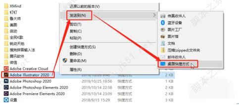 11、鼠標(biāo)右鍵單擊Adobe Illustrator 2020快捷方式,發(fā)送到,桌面快捷方式;這樣你的電腦桌面就有Adobe Illustrator 2020的軟件圖標(biāo)了;