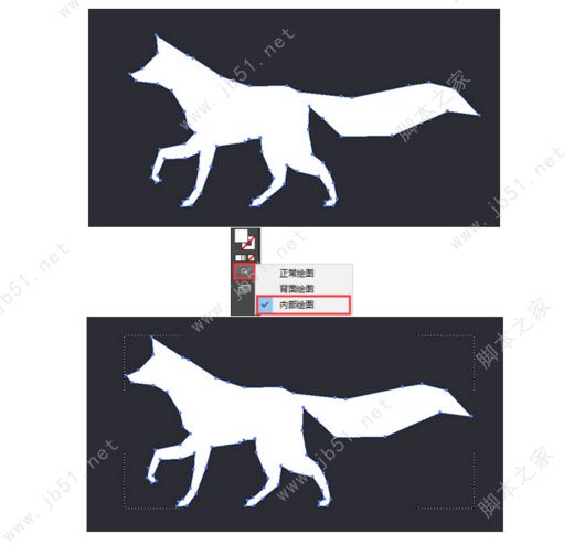 1、選中對象,在工具欄底部選擇 繪圖模式—內(nèi)部繪圖。