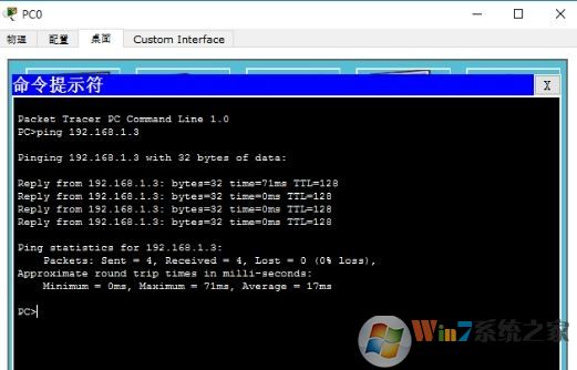 測試:用PC0 ping 192.168.1.3