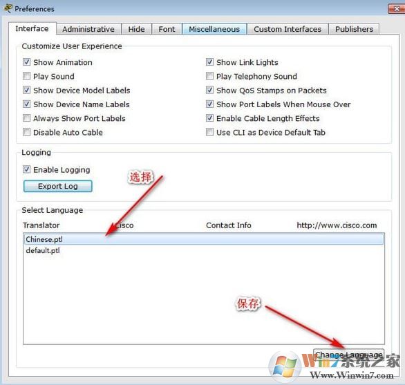 3、運(yùn)行軟件,之后再菜單欄中選擇Option——》Preferences,然后在Interface選項(xiàng)卡下的Select Language選擇“Chinese.ptl”,之后重新運(yùn)行該軟件即可!