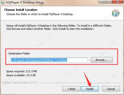 5.選擇安裝目錄(不建議安裝在C盤,默認(rèn)目錄為:C:\Program Files\Signalyst\HQPlayer 4 Desktop),如圖