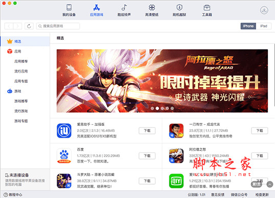 愛思助手Mac版界面簡潔大方,愛思助手Mac版為大家免費(fèi)提供海量正版資源下載,無論您的設(shè)備是否越獄、是否有擁有Apple ID,都能通過愛思助手高速免費(fèi)下載各種應(yīng)用、游戲,更有個性鈴聲、壁紙免費(fèi)隨心下。
