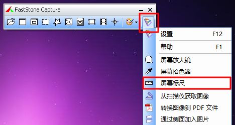 FastStone Capture 還有屏幕標尺功能, 點擊后會屏幕上會出現(xiàn)一個尺子,方便測試屏幕某區(qū)域的像素大小。