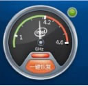 軟件會(huì)顯示未超頻時(shí)的表盤界面,頻率指針表示 CPU 的實(shí)時(shí)頻率并動(dòng)態(tài)擺動(dòng)。綠色部分代表該 CPU 的默認(rèn)頻率范圍,灰色部分代表超頻后該 CPU 可到達(dá)的新增頻率范圍。
