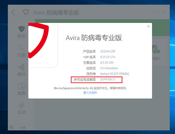 注:屏蔽聯(lián)網(wǎng)認(rèn)證好像不影響病毒庫的關(guān)系,KEY授權(quán)日期至2099
