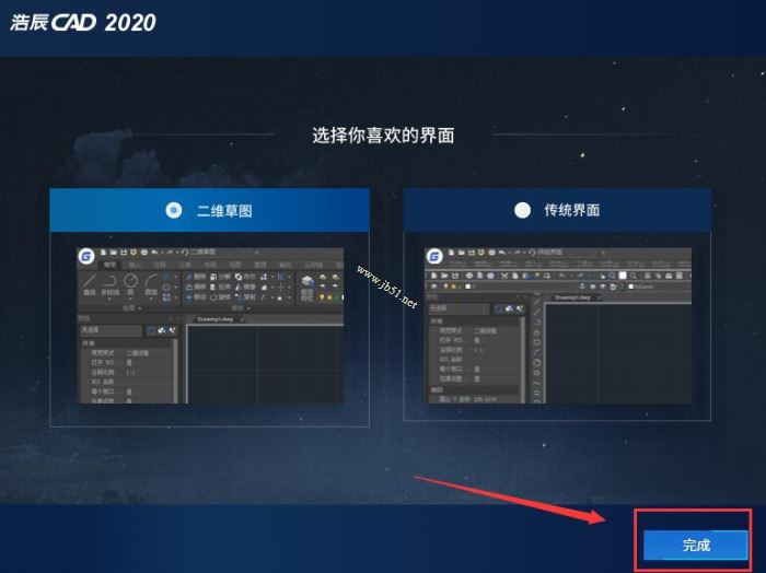 5、選擇需要使用的界面類型,點擊“完成”