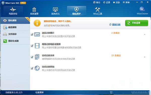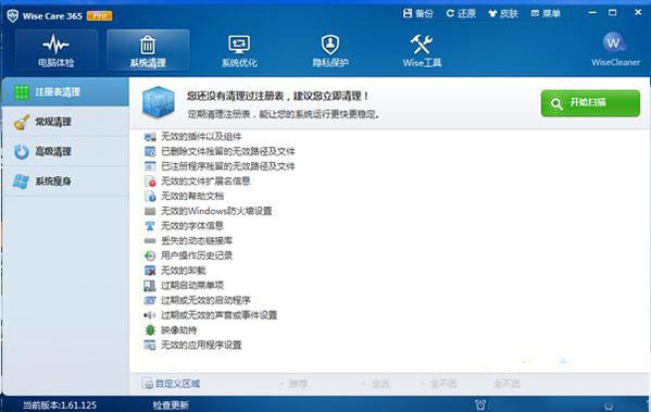 Wise Care 365 Pro能夠?qū)崿F(xiàn)清冊(cè)表清理,常規(guī)清理,計(jì)算機(jī)痕跡清理、高級(jí)清理和系統(tǒng)瘦身。常規(guī)清理是非常傻瓜化的,而高級(jí)清理的高級(jí)設(shè)置中,能夠讓你添加更多不同種類的系統(tǒng)垃圾文件后綴名,從而讓清理功能更加強(qiáng)勁。系統(tǒng)瘦身則是可以刪除補(bǔ)丁文件、示例音樂和自帶壁紙;