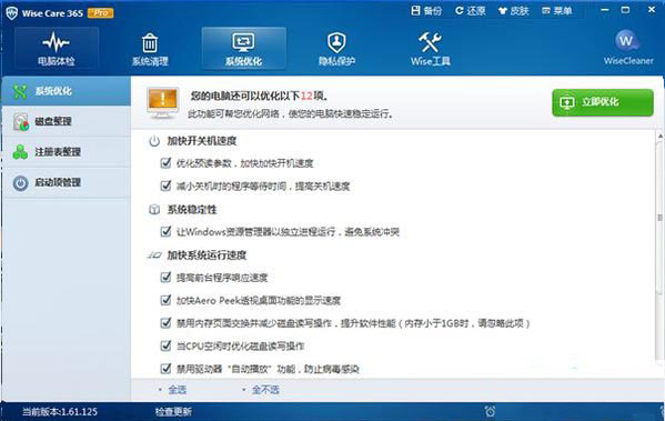 Wise Care 365 Pro是一款專業(yè)的系統(tǒng)優(yōu)化軟件,可以進(jìn)行注冊(cè)表和垃圾文件的清理,用來管理、維護(hù)、配置以及解決電腦故障,還可以幫助更多的用戶保護(hù)個(gè)人的隱私,支持電腦的系統(tǒng)優(yōu)化、碎片處理等操作,輕松加速您的系統(tǒng)!