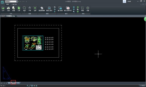 2、將圖紙切換到布局空間,會發(fā)現(xiàn)只有一部分背景色是黑色的,其余的并不是,在其他地方自己新建的視口背景色就不是黑色的;