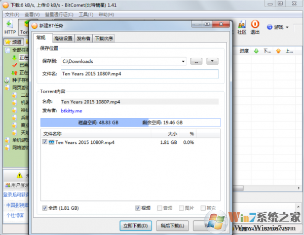BitComet比特彗星BT下載器是一款免費(fèi)的BT/HTTP/FTP下載軟件!具有獨(dú)創(chuàng)的長(zhǎng)效種子功能,可以大大提高下載速度,延長(zhǎng)種子壽命,功能強(qiáng)大速度快,操作簡(jiǎn)單的BT下載軟件,BT資源下載利器!