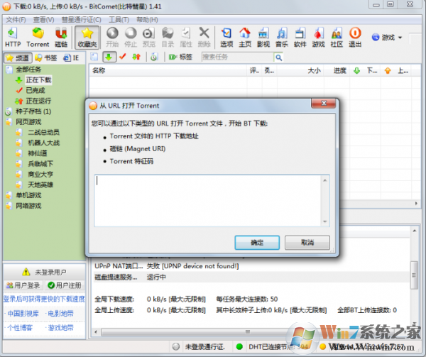 2、從URL打開(kāi)Torrent文件:點(diǎn)擊“文件”,在彈出的選中點(diǎn)擊“從URL打開(kāi)Torrent”后,將URL復(fù)制至對(duì)話框中,等待系統(tǒng)下載Torrent文件后,選擇下載位置,即可開(kāi)始下載;
